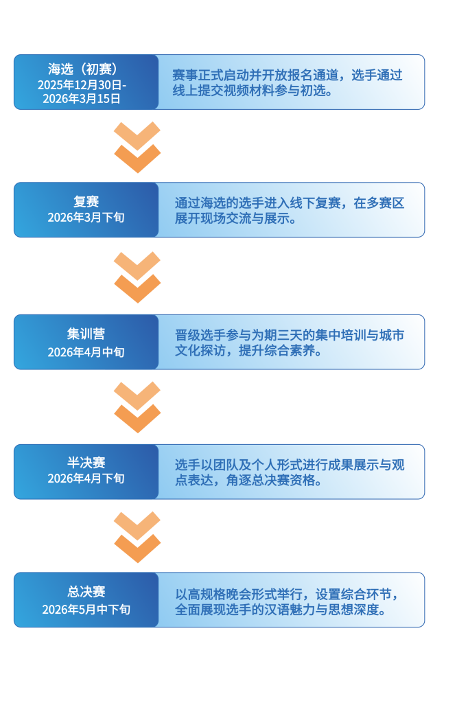 为深入贯彻落实国家关于增强中华文明传播力影响力、深化文明交流互鉴的指导精神,积极响应“十五五”时期推动文化事业繁荣发展与高水平对外开放的规划部署,2026年“钱塘杯”国际青年汉语文化大赛正式启动。